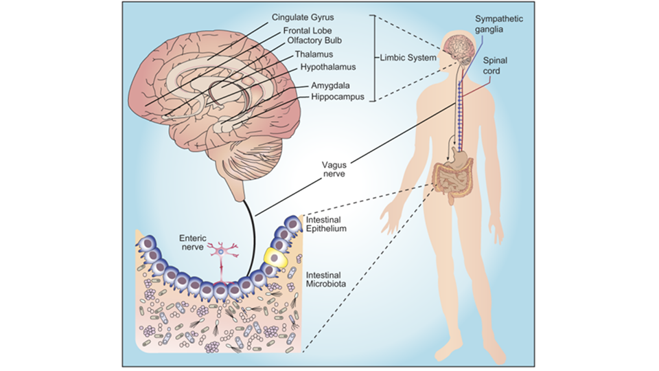迷走神经是脑神经中行程最长,分布范围最广的神经,可支配呼吸系统和消化系统的绝大部分器官以及腺体的分泌,肠道菌群可以通过迷走神经影响人的进食模式。